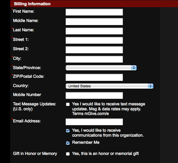 Ask for a mobile number on the form on your website where you collect all of your supporter’s information (name, address, etc.), as in these two examples: